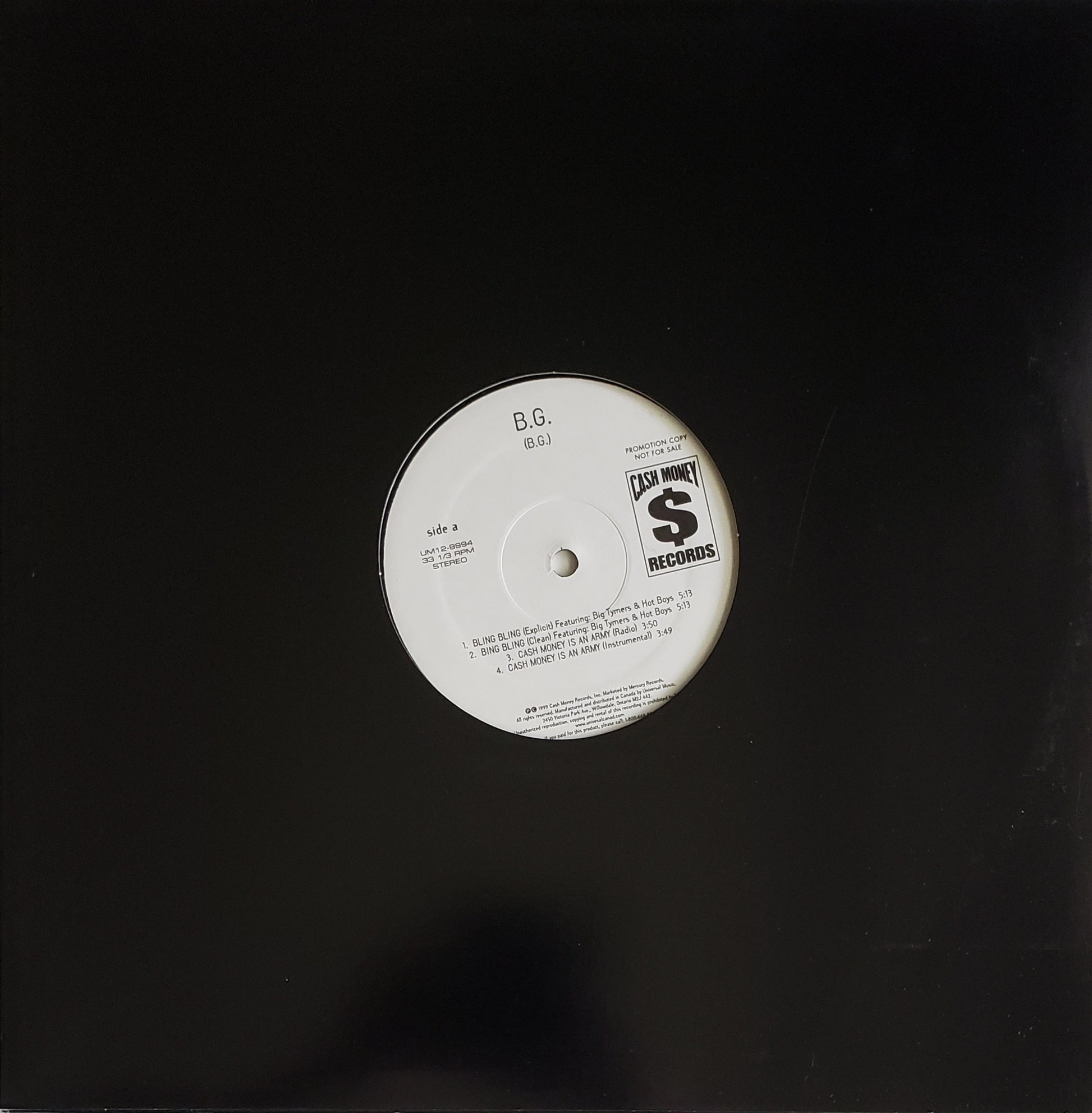 B.G./Eightball & M.J.G. "Bling Bling/Cash Money Is An Army/We Started This/Don't Flex (12" LP))