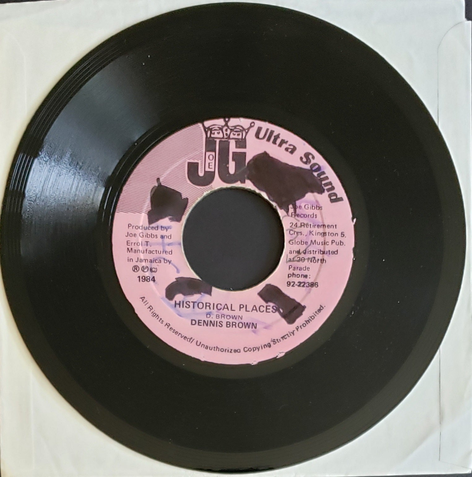 Dennis Brown 'Historical Places" (7" Vinyl 45 RPM) Vintage Reggae -RARE